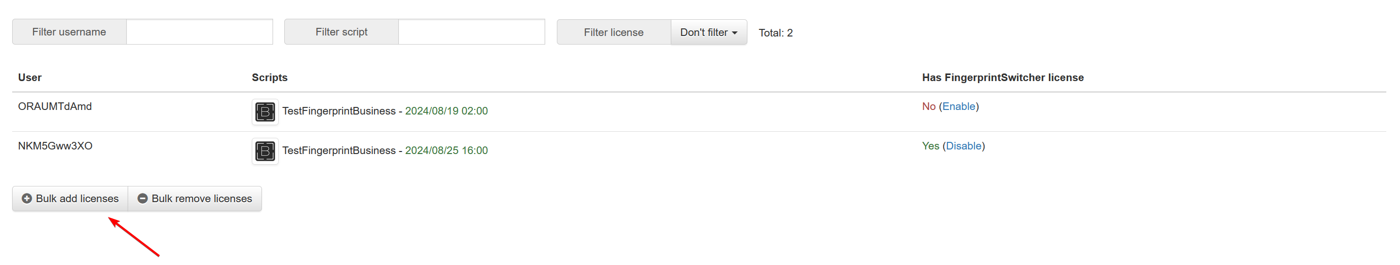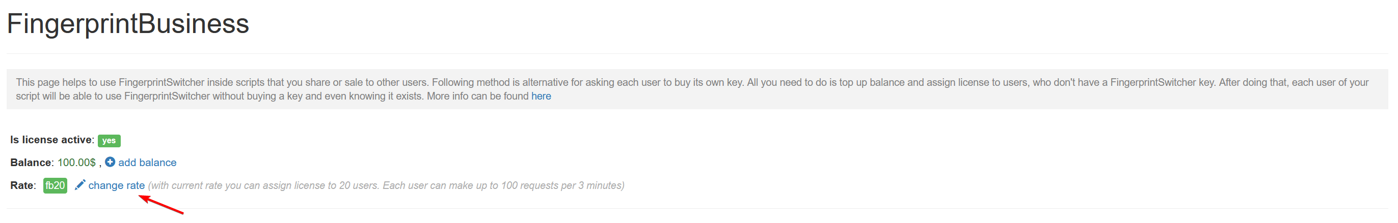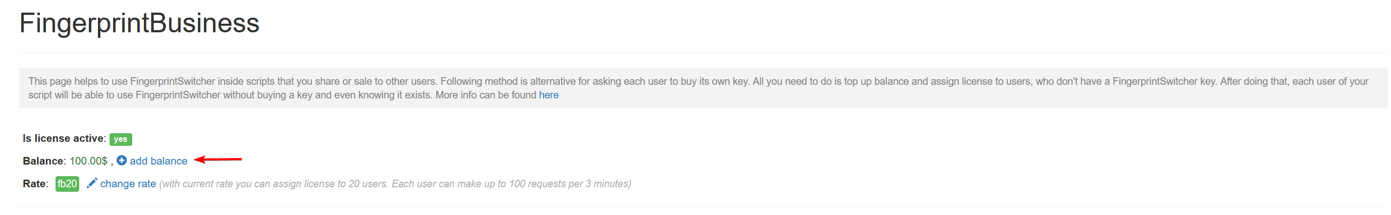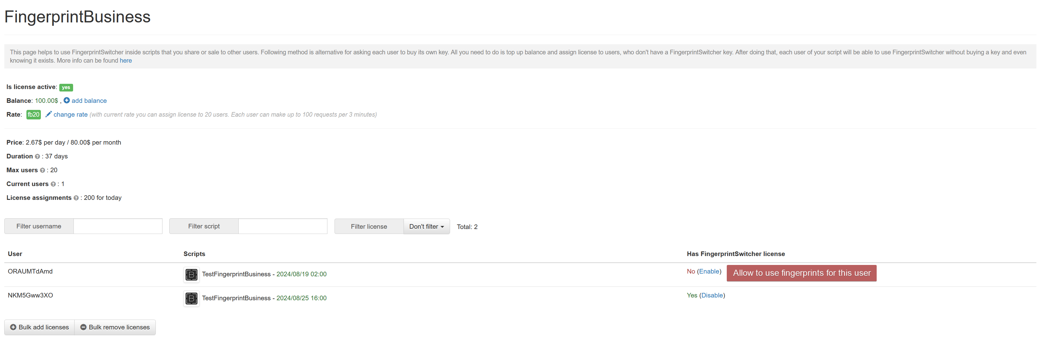 Here is a brief explanation on how it works. With FingerprintBusiness you can allow to use fingerprints for each user of your script. Basically it means that you can assign FingerprintSwitcher license to your users. License assignment can be done through web panel with only one click.
