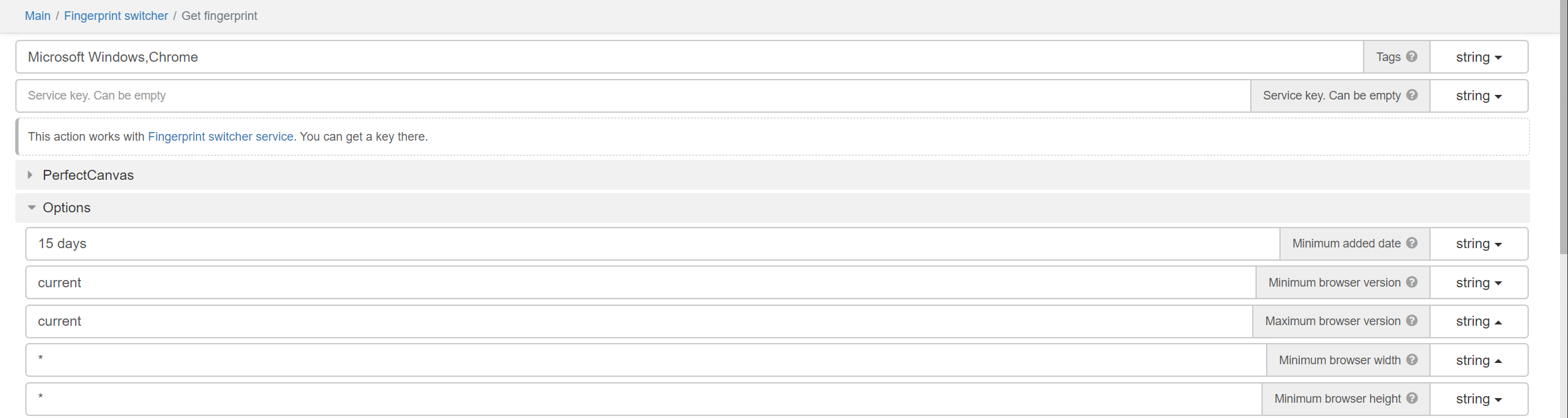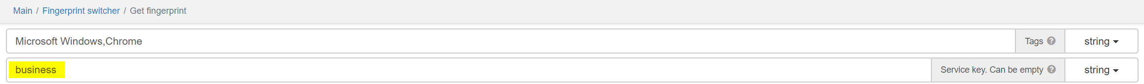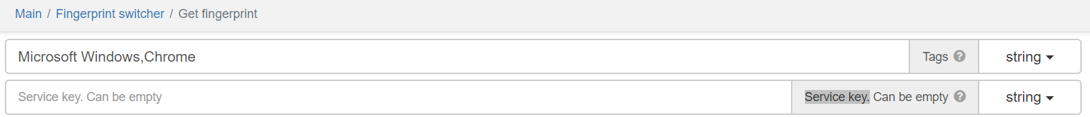 Note that if you receive “Key is empty” error when using this method, please ensure, that all other params like “Minimum browser version”, “Tags” and others are set to default values. The simple way to do that is to create new “Get fingerprint” and use it without changing anything.